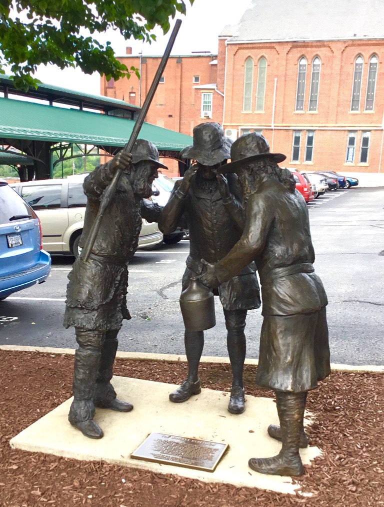 This statue on the main street of Washington, Pennsylvania shows a pair of locals molesting the federal revenue agent- the man collecting the whiskey tax. This scene would be early in the play; things got so bad that the president, and remember, this was still the beloved George Washington, wound up sending 13,000 troops to put down violent revolt. I love this history!