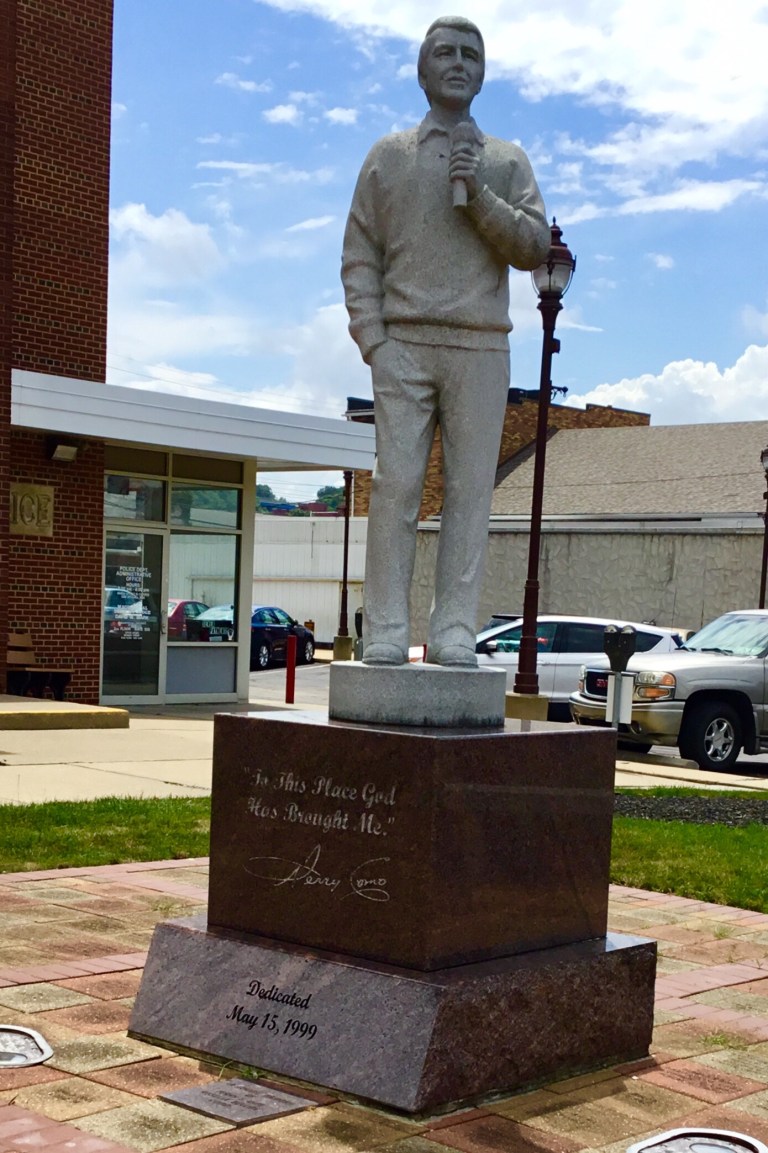 My wretched routes over hill and dale – very high and very deep – took me to Canonsburg, a town built on coal mining…and by the way, down these back roads, the vestiges of a giant coal industry remain, some still active. Canonsburg is the home of Bobby Vinton (who is apparently represented by a singing rock outside a Dairy Queen), members of the Four Coins, a 50s singing group……and Perry Como (and many more, but Mr. C. is who they celebrate).