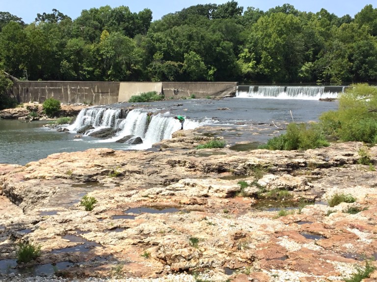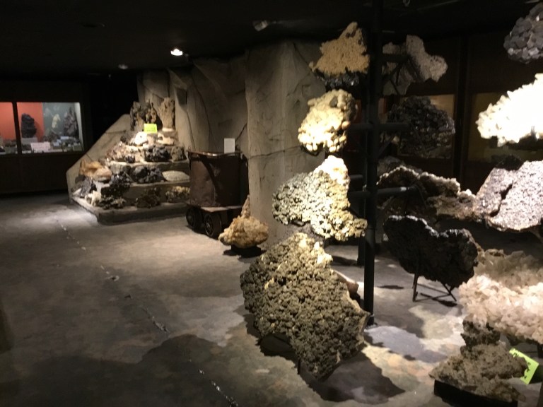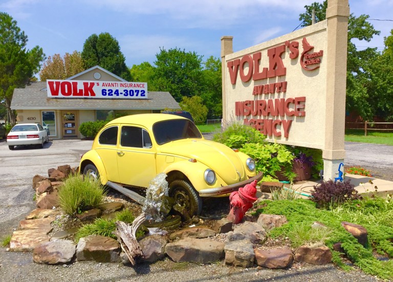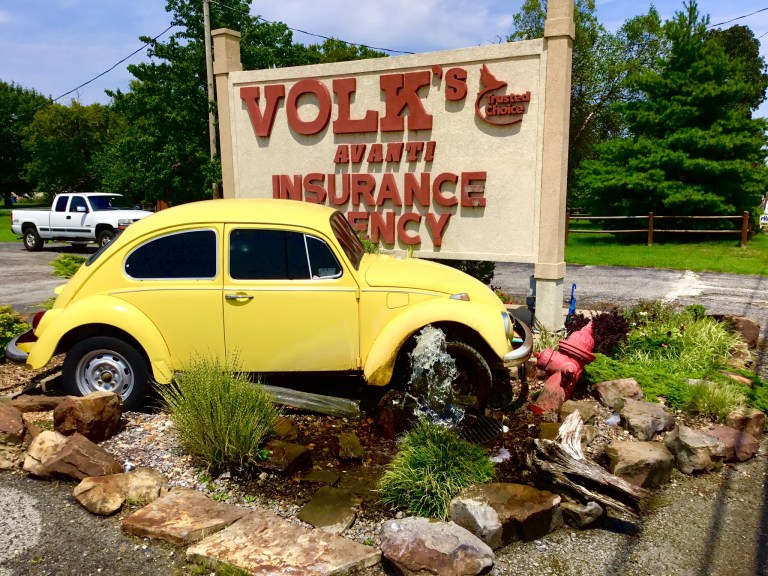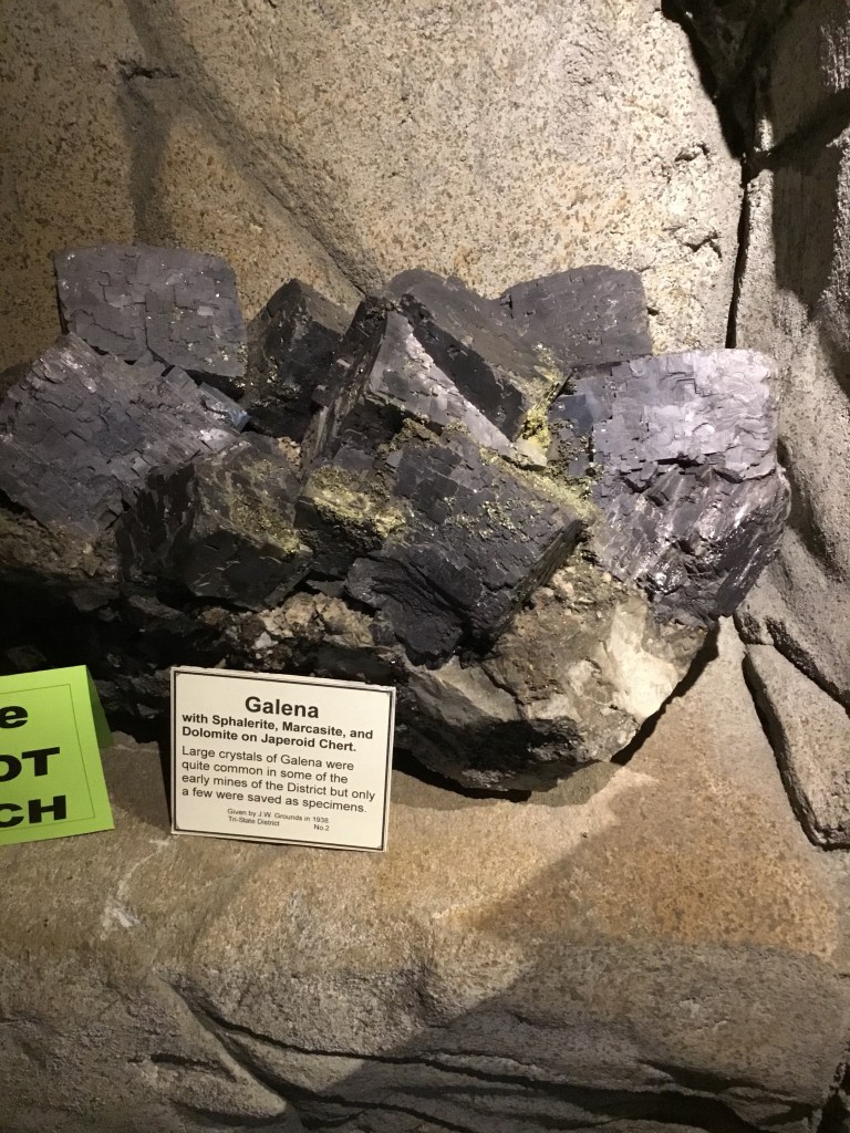 But the museum also had a very nice World War I display, a circus miniature display, a fire engine, and more.img_7839img_7848img_7843There is also the mineral museum; again very little signage, not much to rivet me. Apparently this area is part of what they call the tri-state mineral deposit, lead, or galena being the prevalent product. Lead seems to of made quite a number of people very wealthy in this region in the 1800s. Two more things in Joplin, before hitting the road: one of them Grand Falls, or as the locals simply call it “the falls”, on Shoal Creek. The other is one of the cutest bits of advertising any company could have! What better way for the Volks Insurance Agency to advertise itself than with a Volkswagen… In this case knocking over a fire hydrant! Right in front of the agency! Water actually gushing from the broken pipe! Finally, it was off to Oklahoma City for the weekend! Television news tonight reports that parts of Tulsa got up to 7 inches of rain in a massive thunderstorm that I happened to drive through as I passed that city. Flooding on the interstate means the underside of my car is clean as a whistle! It was otherwise a good drive to Oklahoma City and I have already learned on my first evening that this is the city that supports my theory about how wonderfully Americans entertain each other and themselves. No way will I be able to do all of the things that I would like to see and do here; but I’m going to try – starting tomorrow morning!