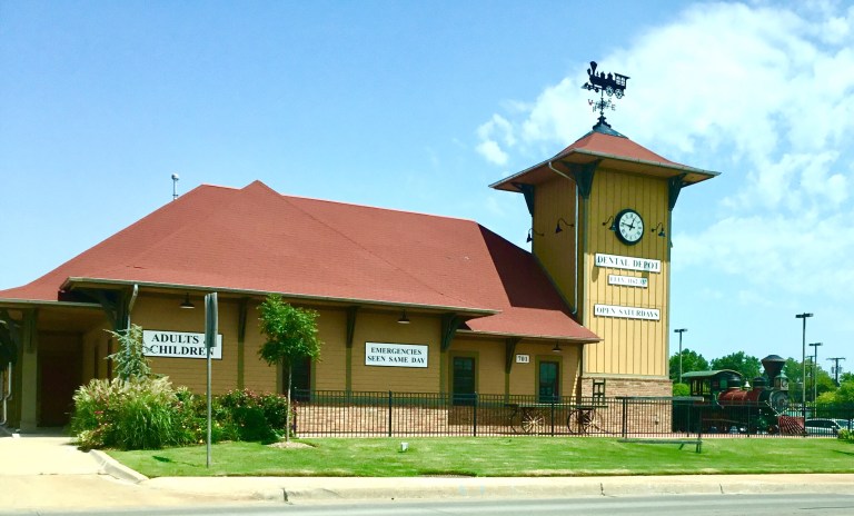 When your dental clinic has a genuine, antique railroad engine as part of its exterior decor, I think you’re doing OK. (Look to the right)