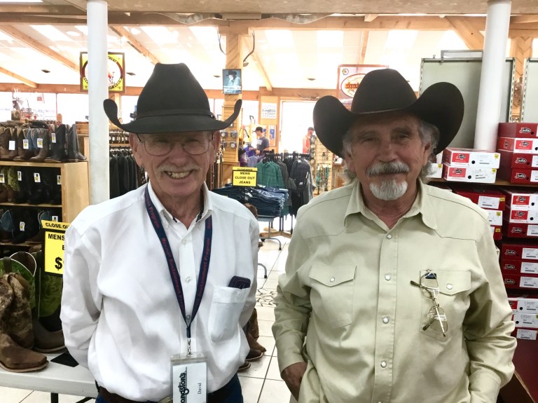 Anyway, Fred and Pat, on the left, are sales clerks in Langston’s. I had no idea! Fred in particular has what I describe as a classic western relaxed way about him – I thought he was the owner! Nope, just a sales clerk, but looking at the two of them together, I knew I had to have a picture. And there it is,, two up. Me, I think they look just great; they are an image of The West.