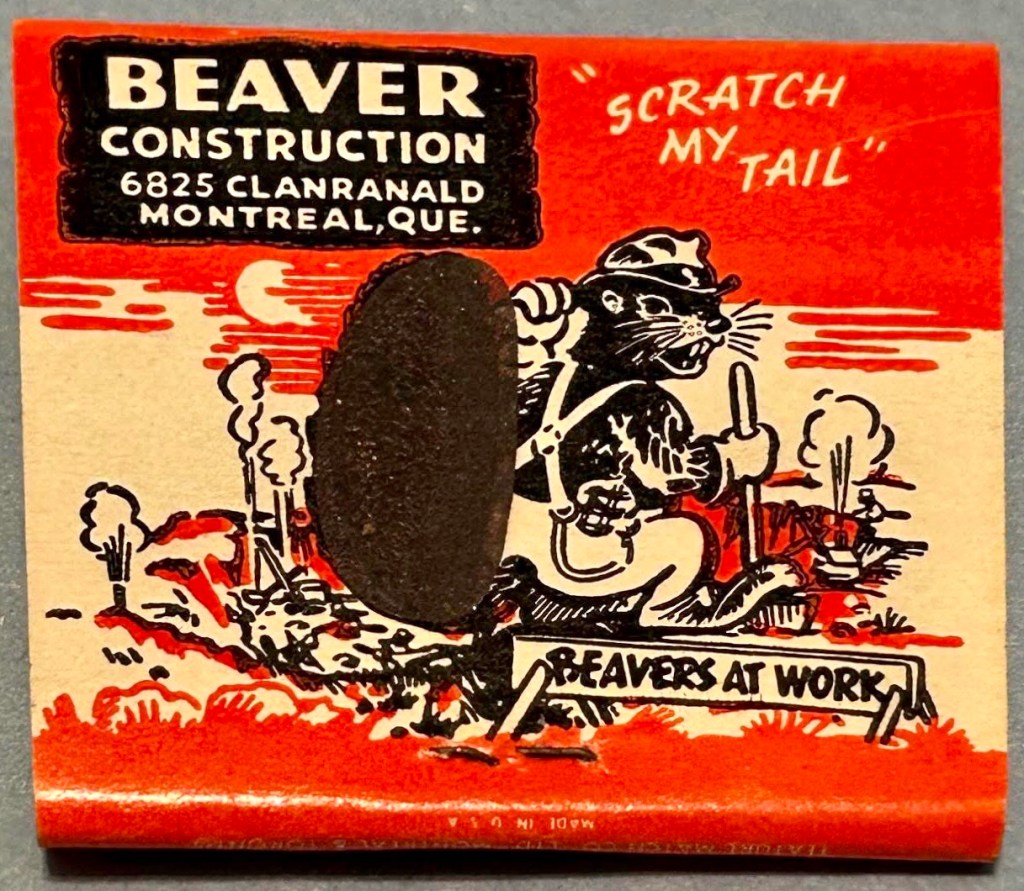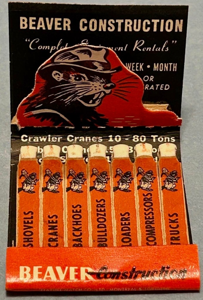First, the matchbook itself — it’s a beautiful Lion Feature posted online in the RMS Facebook page by member Jason Mues. I think it was the Montreal location that made me look into it. But there’s not a lot about Beaver Construction itself easily found online.