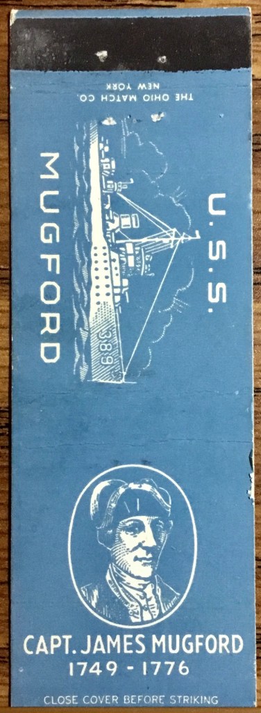 So finally, a couple of things: the first U.S.S. Mugford, DD-105 was a Wickes-class destroyer commissioned in 1918, decommissioned in ’22 and sold for scrap in ’36.