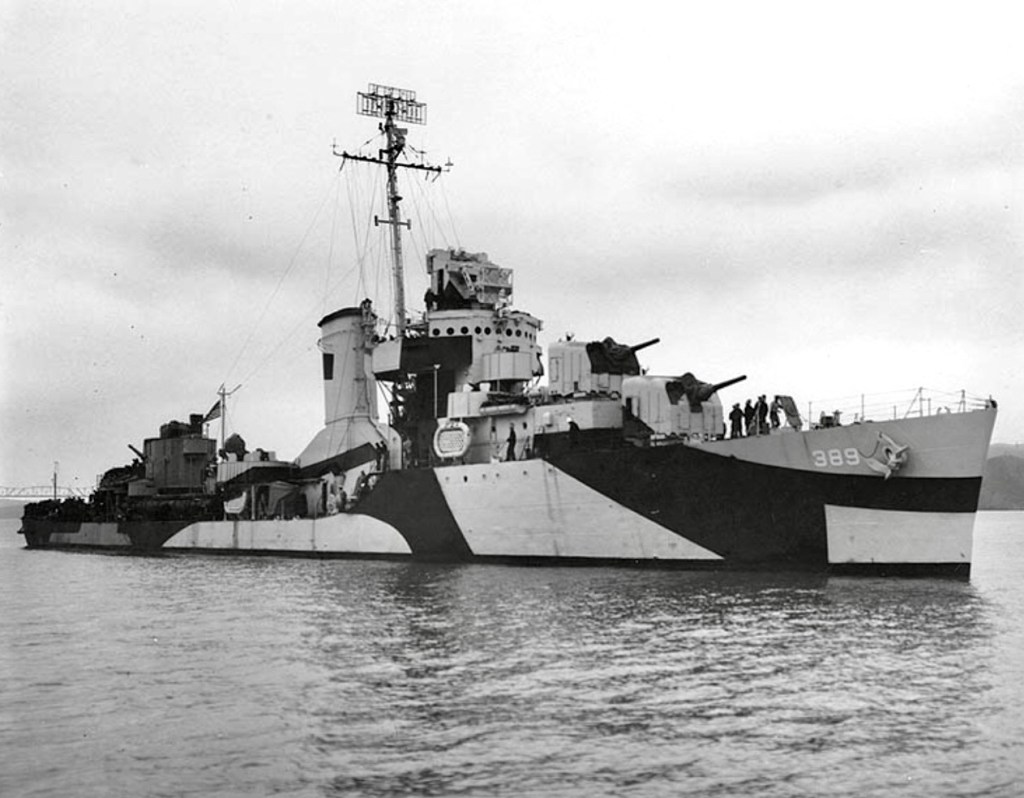 U.S.S. Mugford, DD-389, was the second ship in the U.S. Navy to bear the name. She was a Bagley-class destroyer, one of 8 ordered in 1935 and completed in 1937 in Boston. She joined the Pacific Fleet that year, quietly patrolling the eastern Pacific until rising political tensions saw her shifted to Pearl Harbor, Territory of Hawaii. In 1940, all of her gun crews received the “E” for excellence ships are proud to display; they had all achieved perfect scores in a shooting contest. I think that was evidenced on Dec 7th. The plane shoot-downs I alluded to earlier were all courtesy of Mugford’s .50 cal. machine guns!