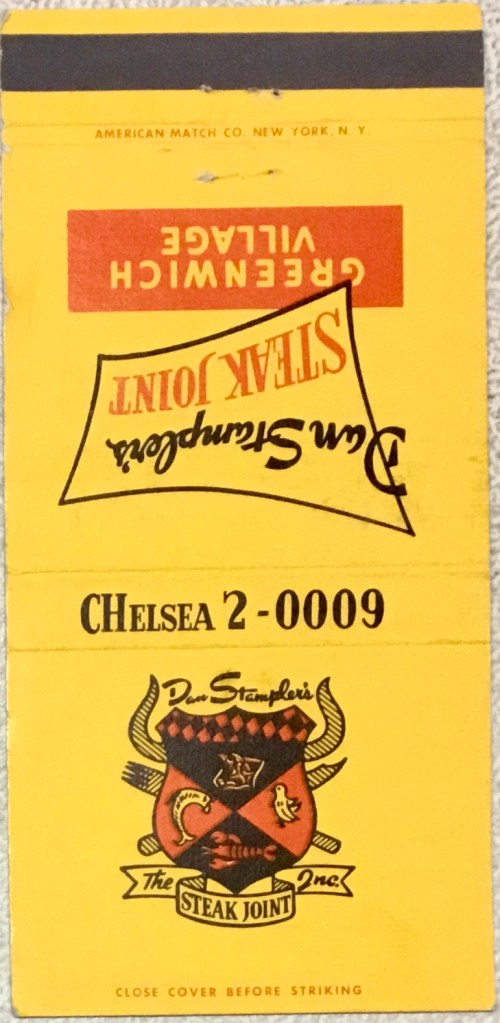 The Steak Joint is also one of three American restaurants claiming to be the originator of the “doggie bag”. The others (for which you can probably find matchcovers) are Lawry’s Prime Rib in Los Angeles and The Old Homestead Steak House in New York City.