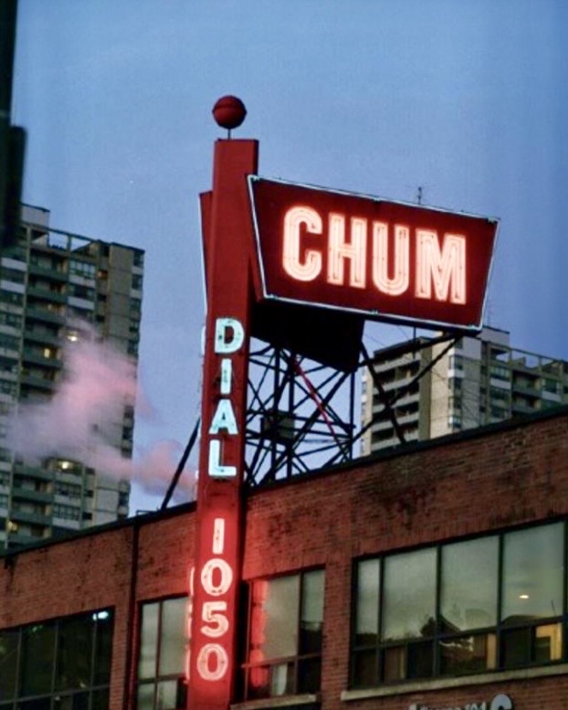 Driving up Yonge Street in downtown Toronto at any time in the last half of the 20th century, there was iconic signage everywhere. A couple for the venerable Eaton’s Department Store at Dundas Street and again at College Street. Just north of Gould Street the huge nearby side-by-side nationally known signs for Sam the Record Man and A&A Records flashed day and night. A bit further north, at 1331 Yonge Street, was the sign that heralded great radiofor a generation – 1050 CHUM.