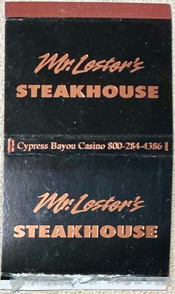 Indians: (fast becoming a pejorative word) The Steak house is named for Lester Darden, a highly respected elder of the Chitimacha tribe. He was the oldest living member when the casino opened in ’93; naming the restaurant was in keeping with honoring tribal elders. He was a WW II veteran and helped draft early versions of the Tribal Constitution.