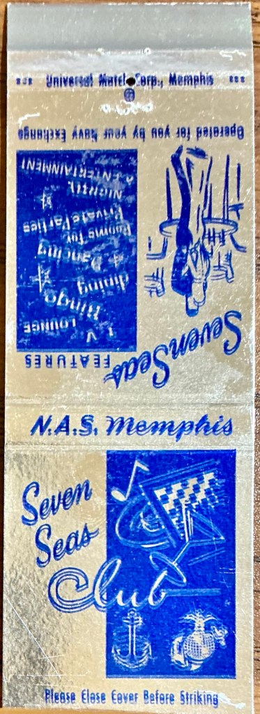 This was the only Seven Seas Memphis cover I have or could find. There are other Navy Seven Seas Club matchcovers, notably at San Diego and a civilian nightspot in Hollywood.